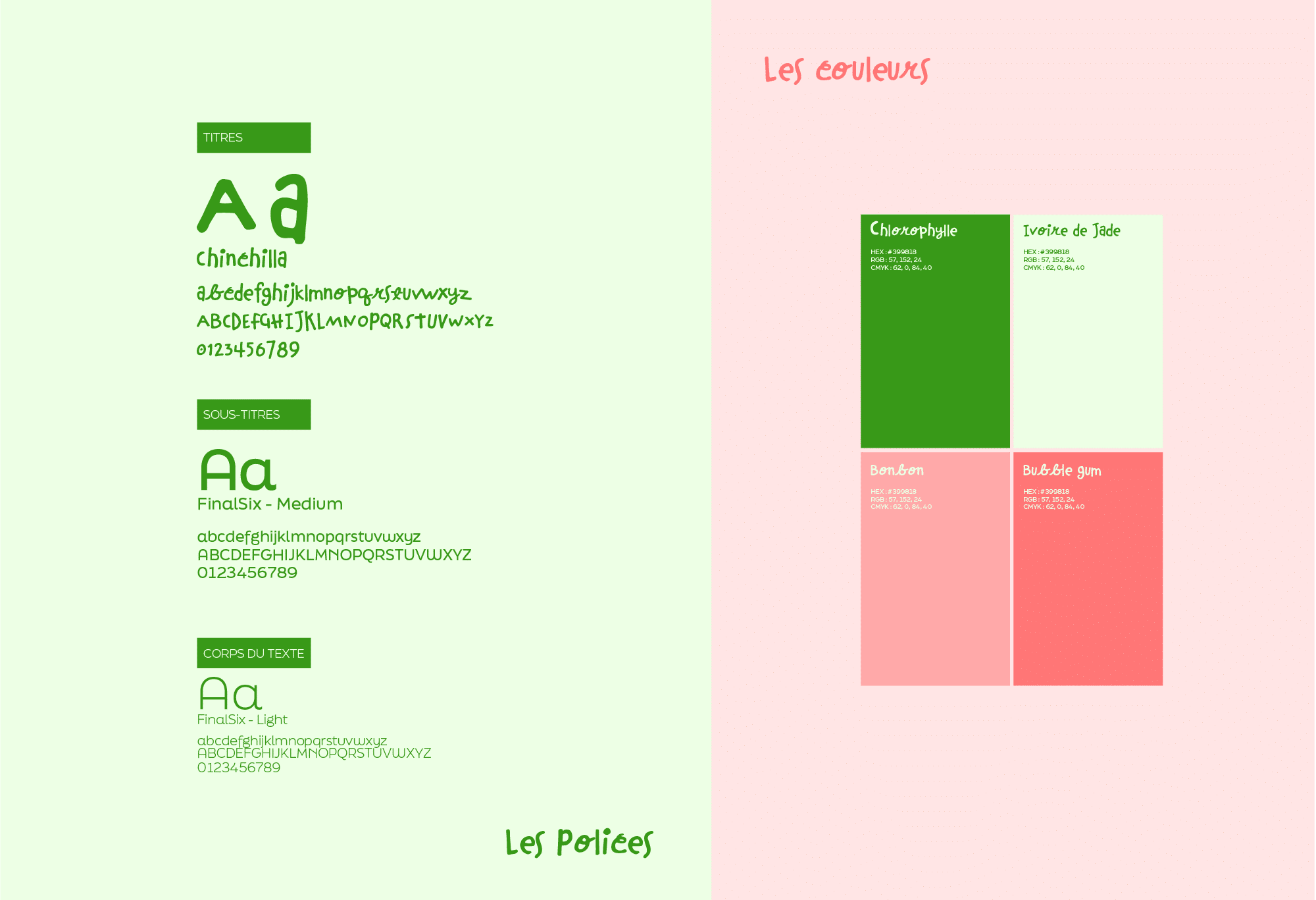Police funky (display) pour les titres (énergie créative) + typo douce pour le corps de texte (équilibre visuel).