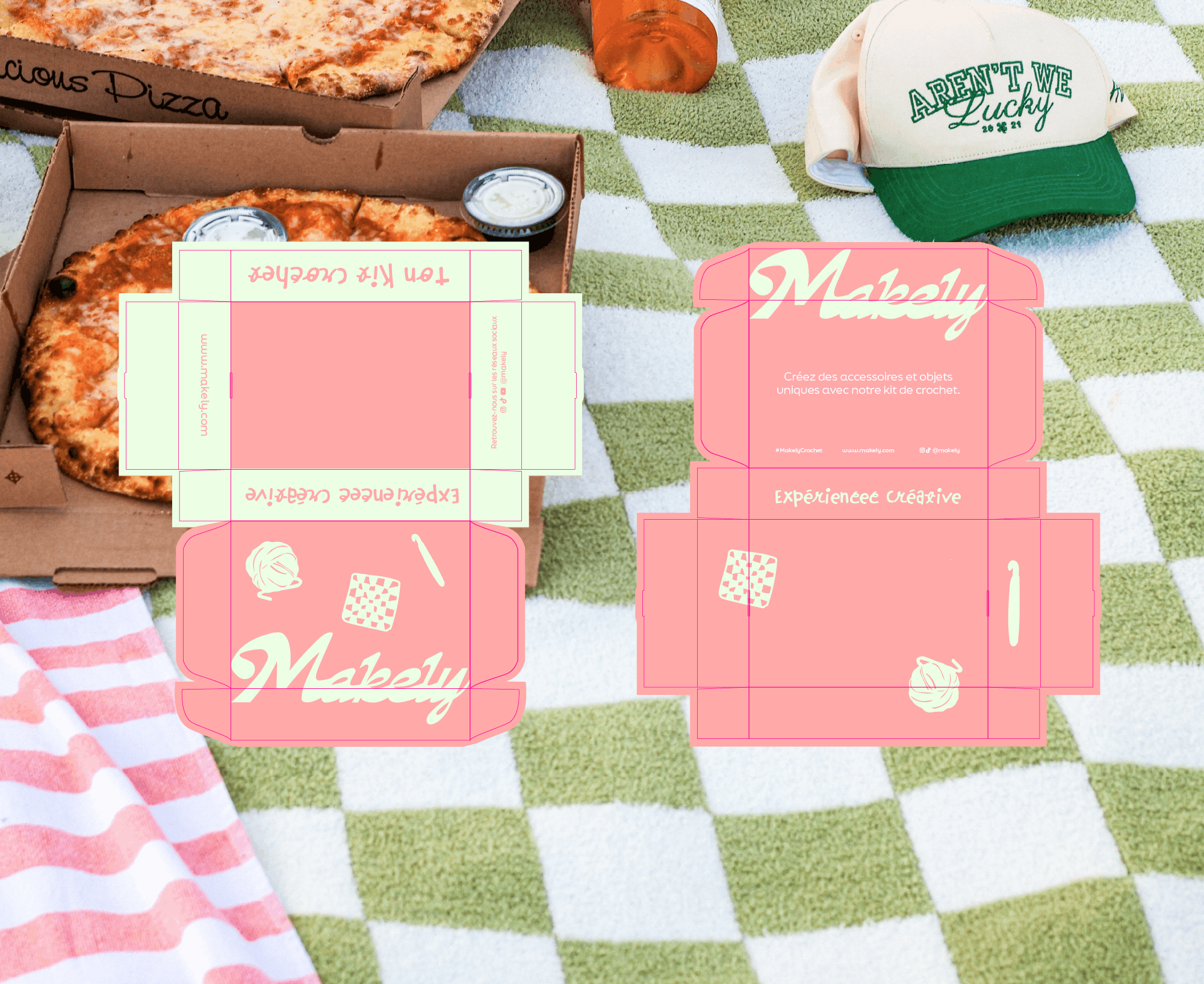 En explorant la palette, j’ai capté une ambiance ludique et jeune. L’idée est née : des kits créatifs pour date nights ou picnics créatifs.